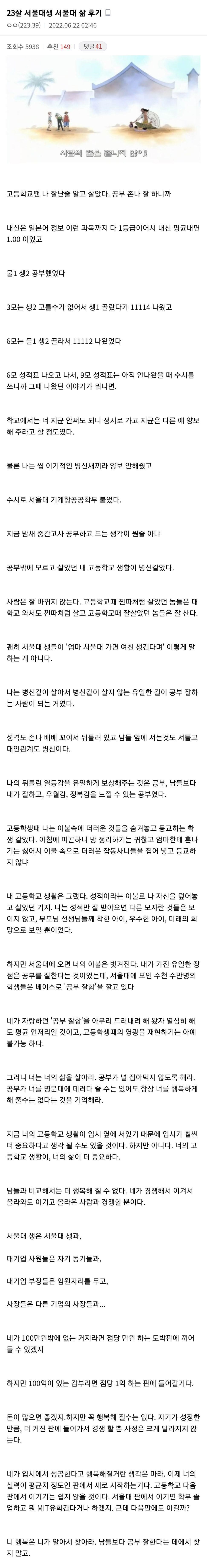 서울대 입학 후기