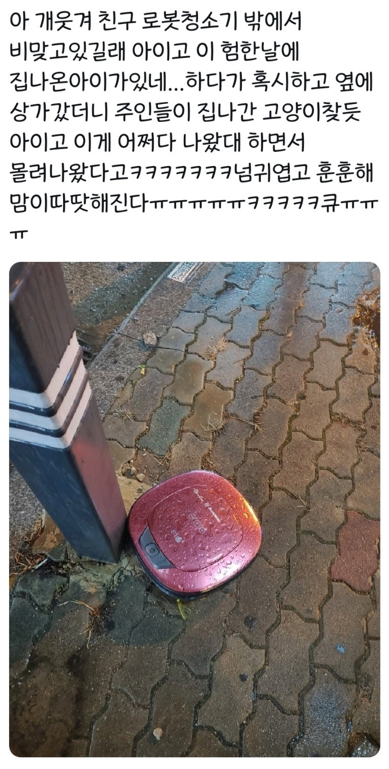 로봇청소기가 길에서 비맞고 있길래 본문 0 피클포털 목록 EVENT) 지금 로그인 후 광고 제거 혜택을 받으세요! TIP) 초승달 아이콘을 누르고 어두운 화면으로 전환 해보세요 TIP) 본문 하단 무지개 로켓을 누르고 시간 여행을 떠나보세요 TIP) 빈 공간을 두 번 누르면 맨 아래로 바로 갈 수 있어요 TIP) 편지 아이콘이 무지개 빛으로 빛난다면 쪽지가 온거에요 TIP) 본문 하단 댓글 온/오프 버튼으로 숨기거나 펼칠 수 있습니다 요즘 길에서 잘 안보인다는 음식 22.06.24 13694 해외에서 이슈라는 헬스장 촬영매너 논란 22.06.24 16820 로봇청소기가 길에서 비맞고 있길래 22.06.24 13057 패션 피플들 사이에서 화제인 귀걸이 22.06.24 14021 중국 공장식 업체 스트리머들 현장 22.06.24 19245 인터넷을 지배하는 10가지 법칙 22.06.24 18020 인스타 감성 카페 문의한 후기 22.06.24 14605 너무 들이대서 개빡친 고양이 22.06.24 13338 처음 이전 5489페이지 5490페이지 5491페이지 5492페이지 5493페이지 열린5494페이지 5495페이지 5496페이지 다음 맨끝 게시물 검색 검색대상 제목 내용 제목+내용 댓글작성자 검색어 필수 삭제요청