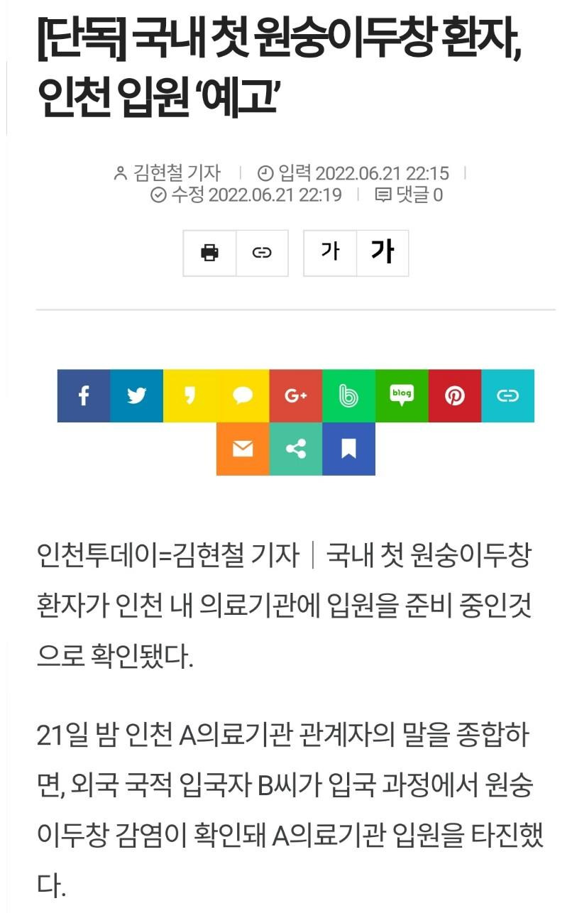 국내 첫 원숭이두창 환자 발생
