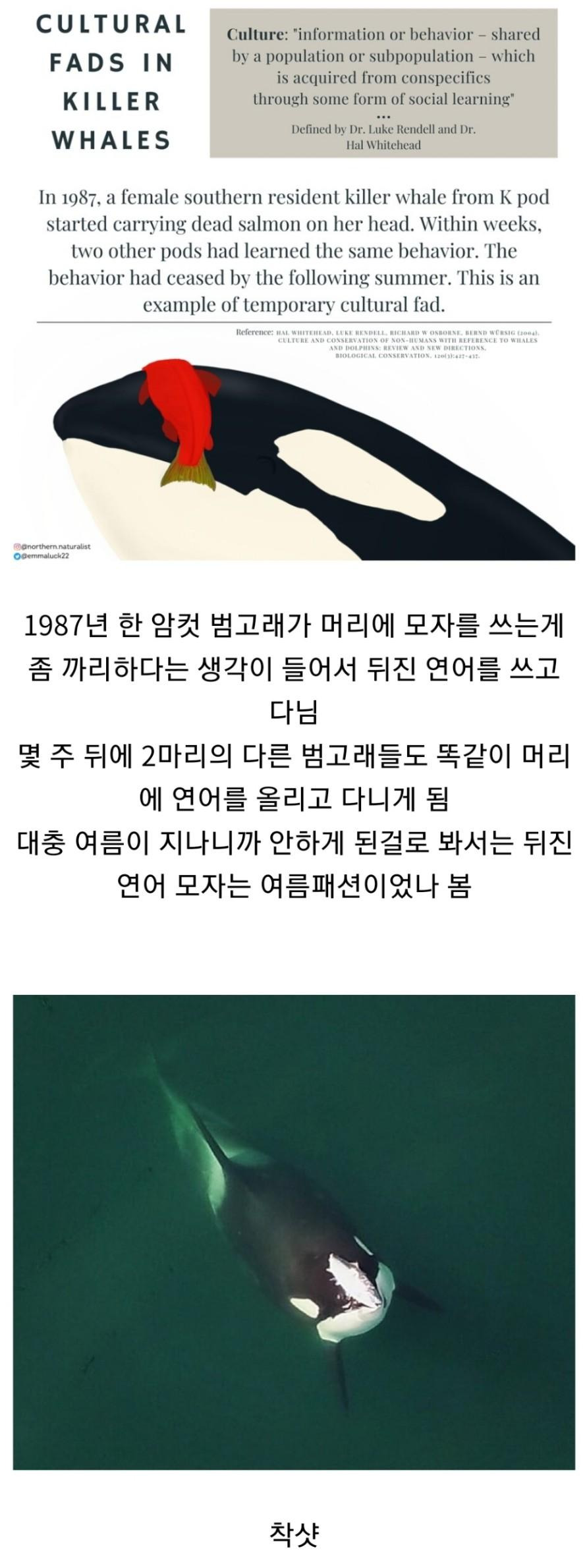 범고래가 연어를 머리위에 올리고 다닌 이유