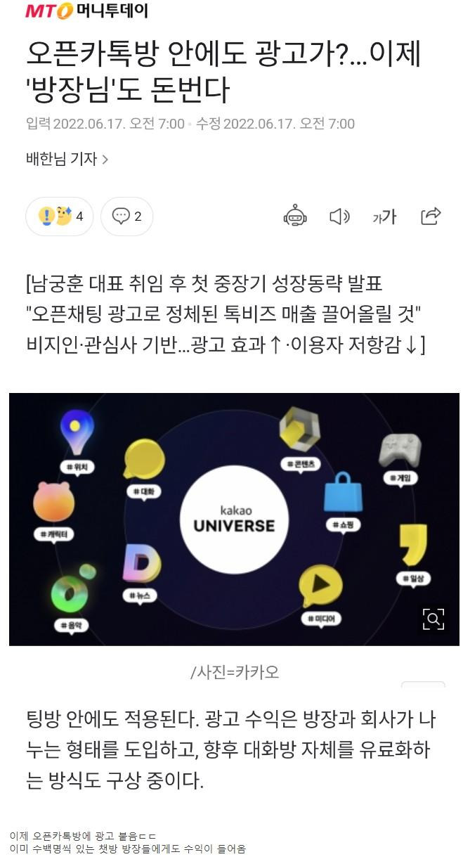 이제 카톡 오픈 채팅방 '방장'도 돈 번다
