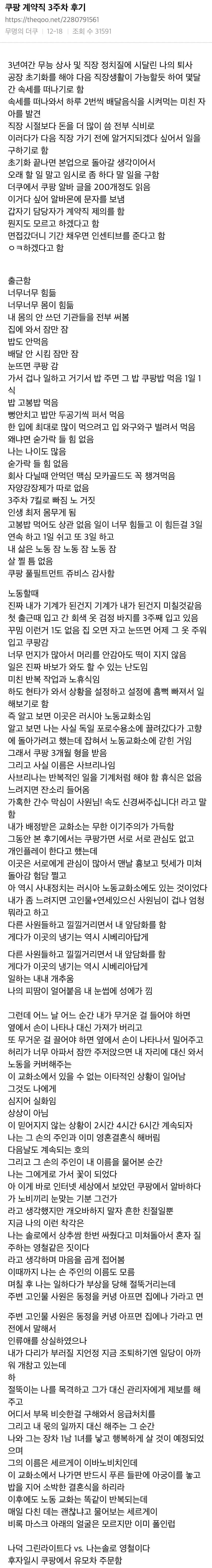언냐의 쿠팡 계약직 3주차 후기