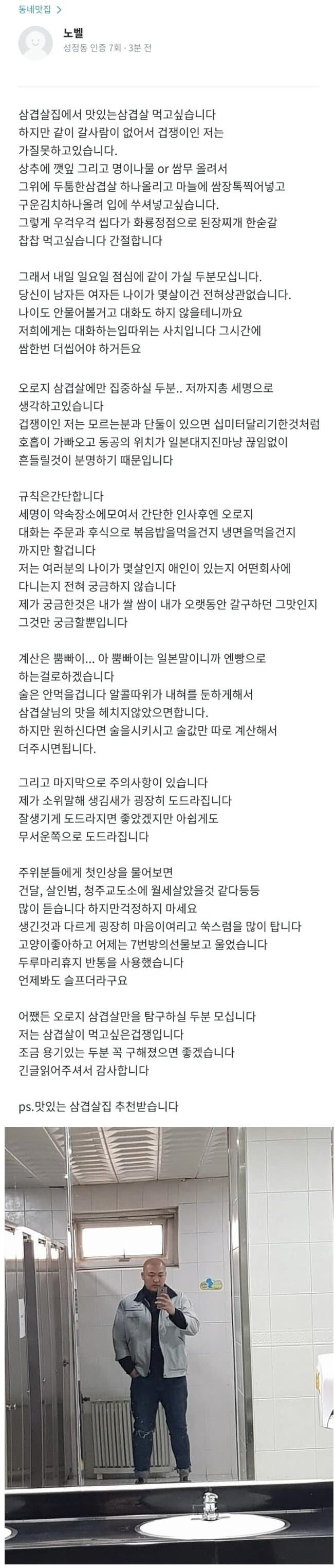 삼겹살 파티 모집 글