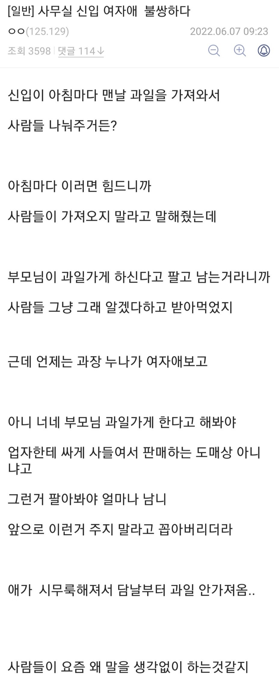 사무실 신입 여자애가 불쌍하다