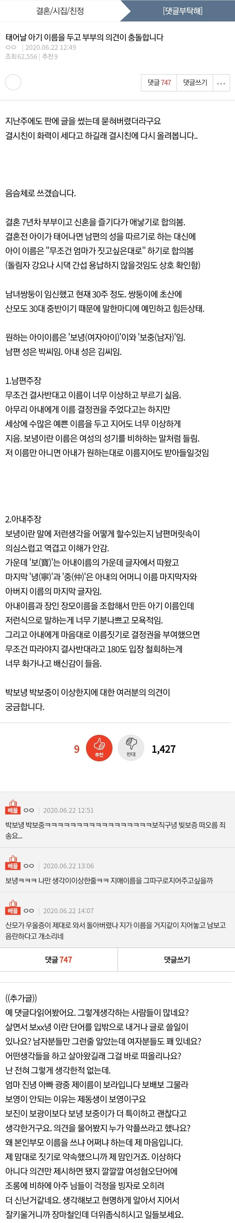 태어날 아기 이름 때문에 다툰 부부