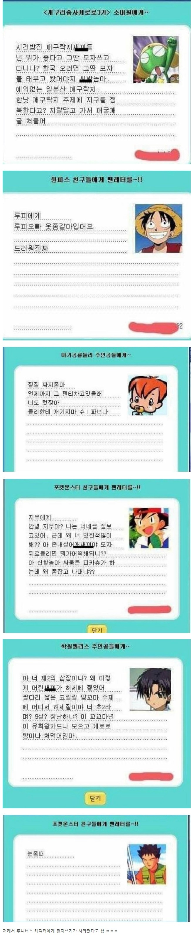 90년대 잼민이들의 악성 팬레터