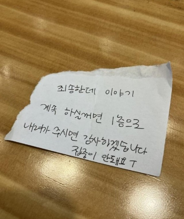 카페에서 여대생한테 쪽지 받았다 ㅋㅋ