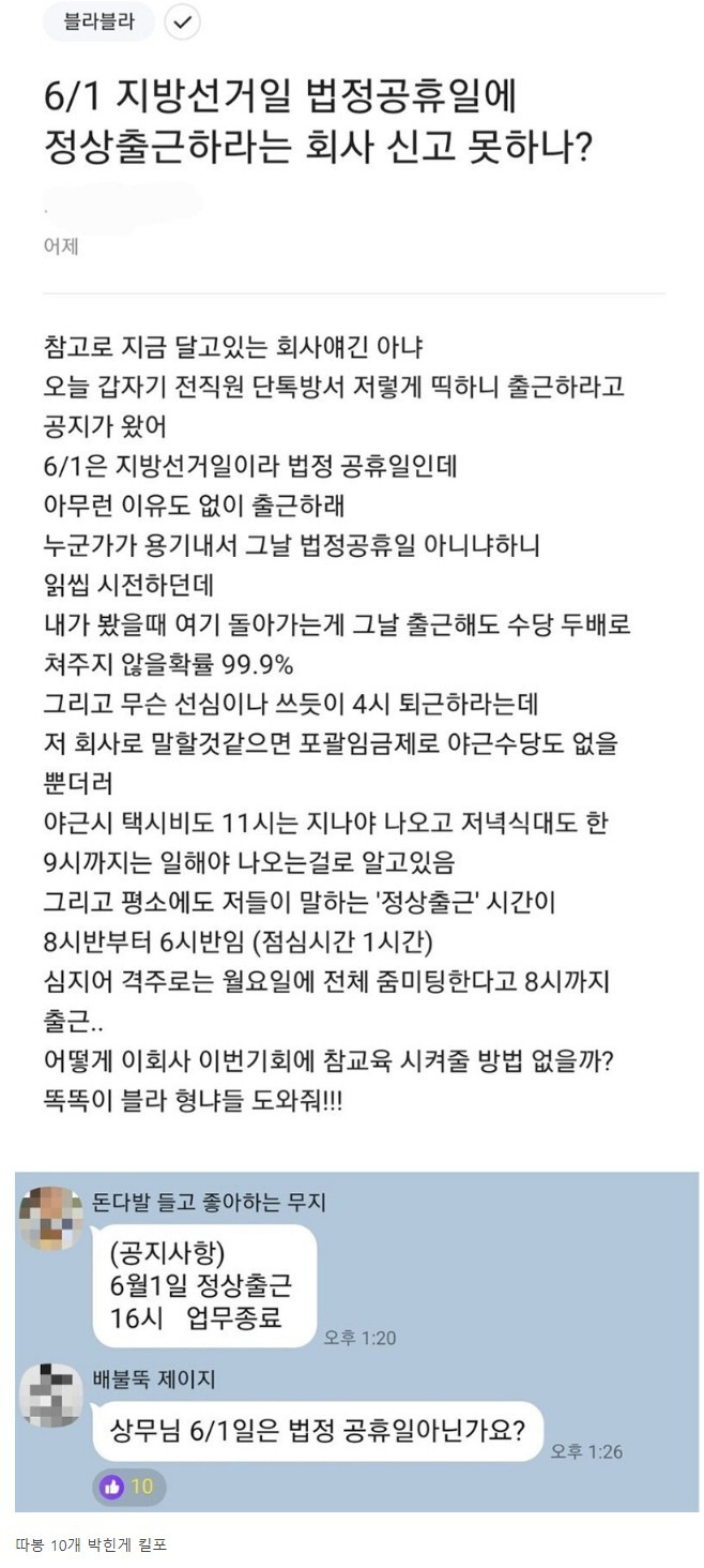 법정 공휴일에 출근하라는 회사