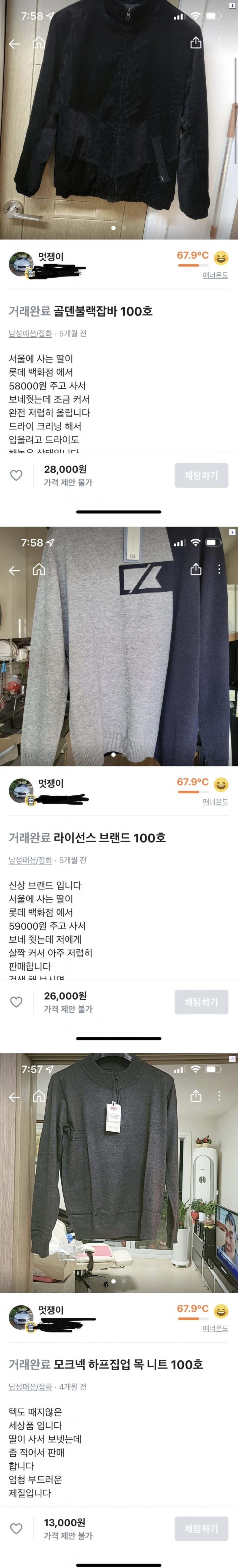딸이 물건 보내는 족족 당근에 올리는 아재