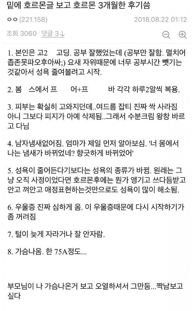 여성호르몬 투약 후기 레전드