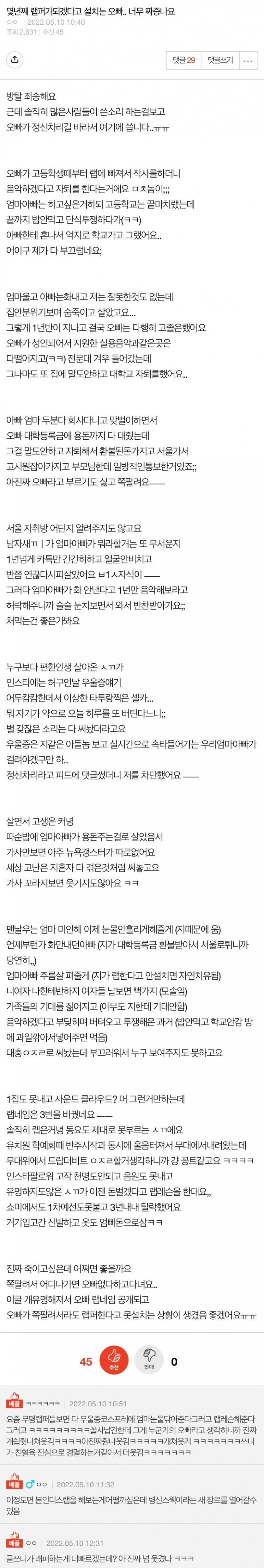 몇 년째 래퍼가 되겠다고 설치는 오빠