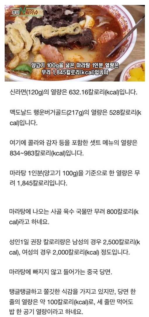 마라탕 칼로리 수준