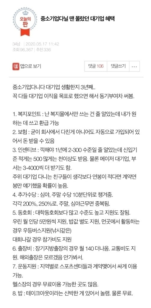 중소기업 다닐 땐 몰랐던 대기업 혜택