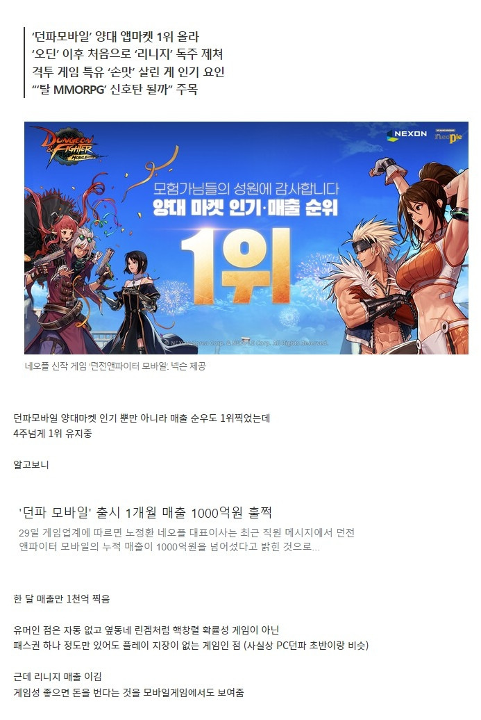 정말 생각하지도 못한 성과를 낸 던파