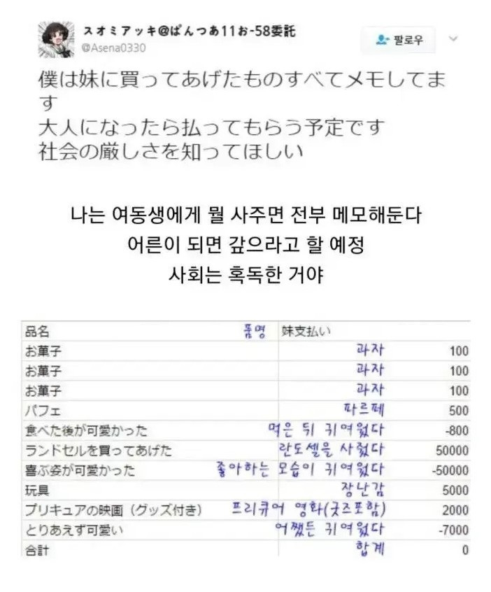 어린 여동생 뭐 사주면 기록 남겨놓는 오빠
