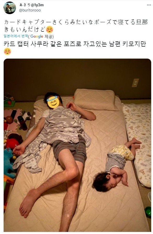 마법소녀 포즈로 잠자는 남편