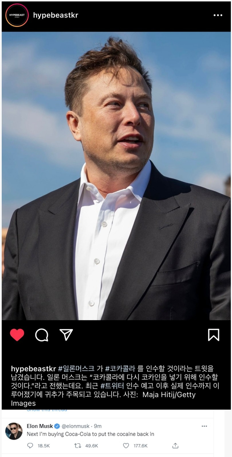 일론머스크 : 코카콜라 인수할 것