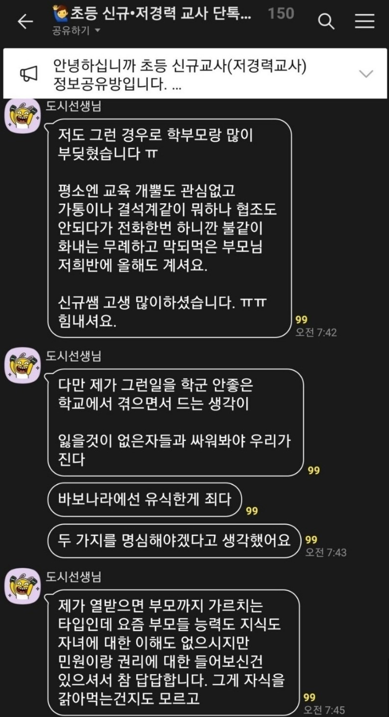 학군 안좋은 초등학교 교사들 단톡방