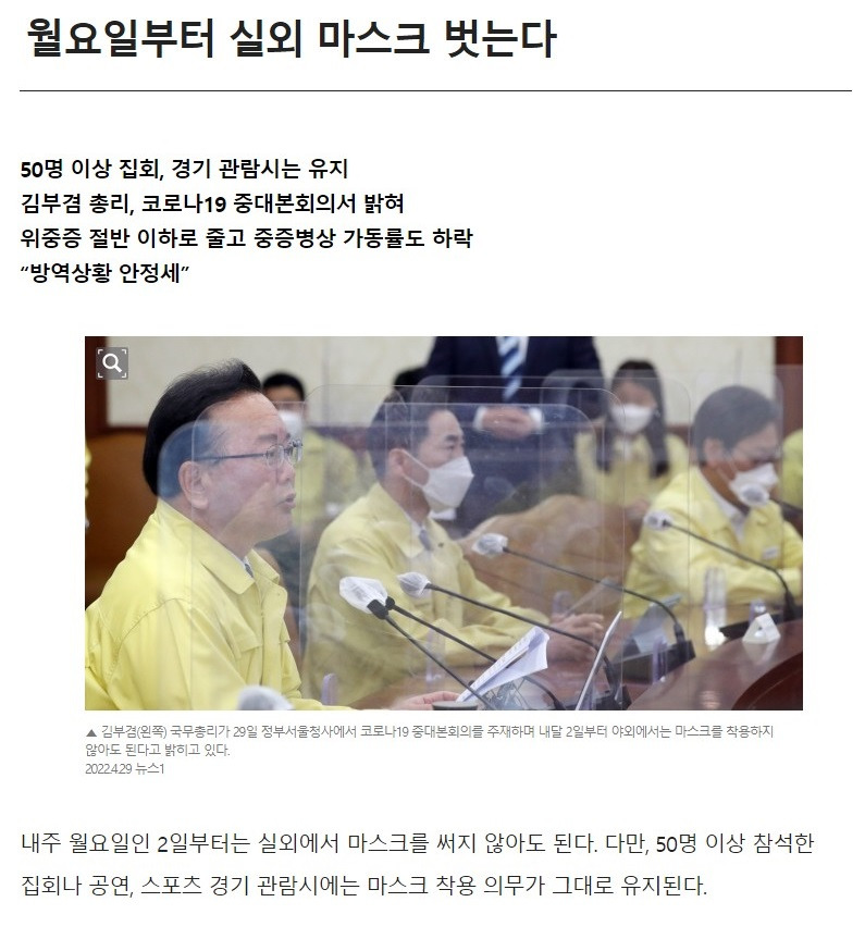다음 주부터 실외 마스크 전면 해제