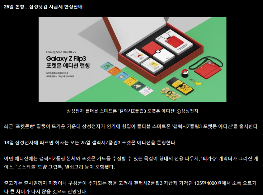 갤럭시 Z플립3 포켓몬 에디션 출시