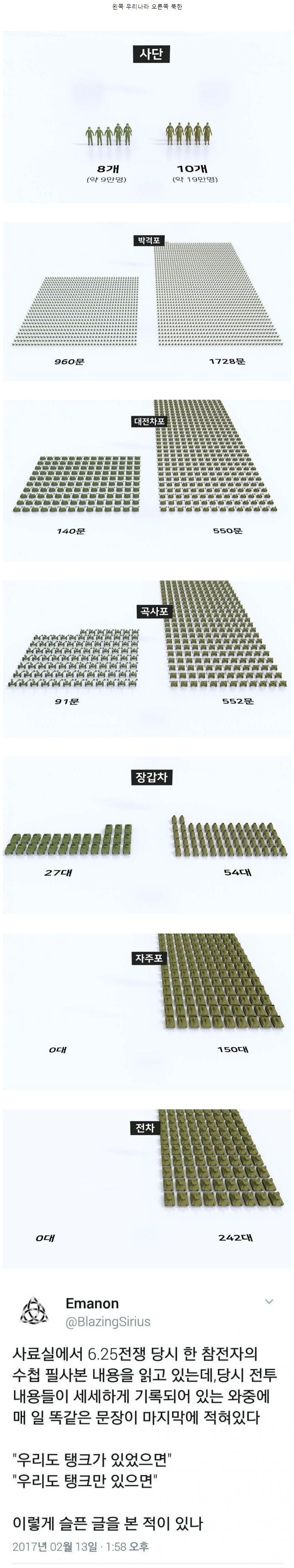 6.25 전쟁 당시 남북한 군사력 비교