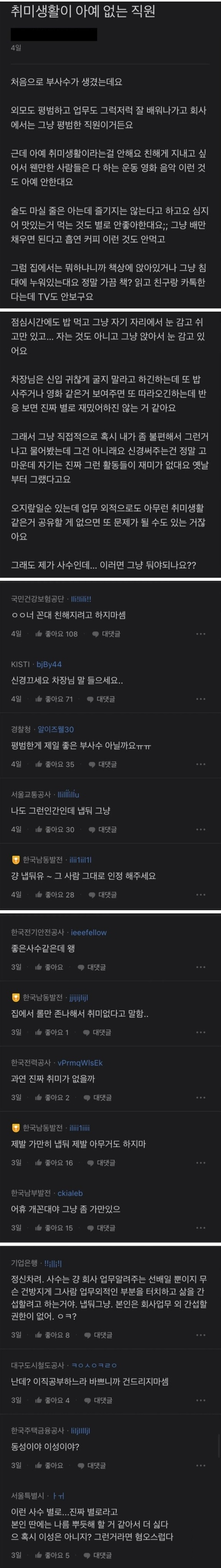 취미생활이 아예 없다는 부사수