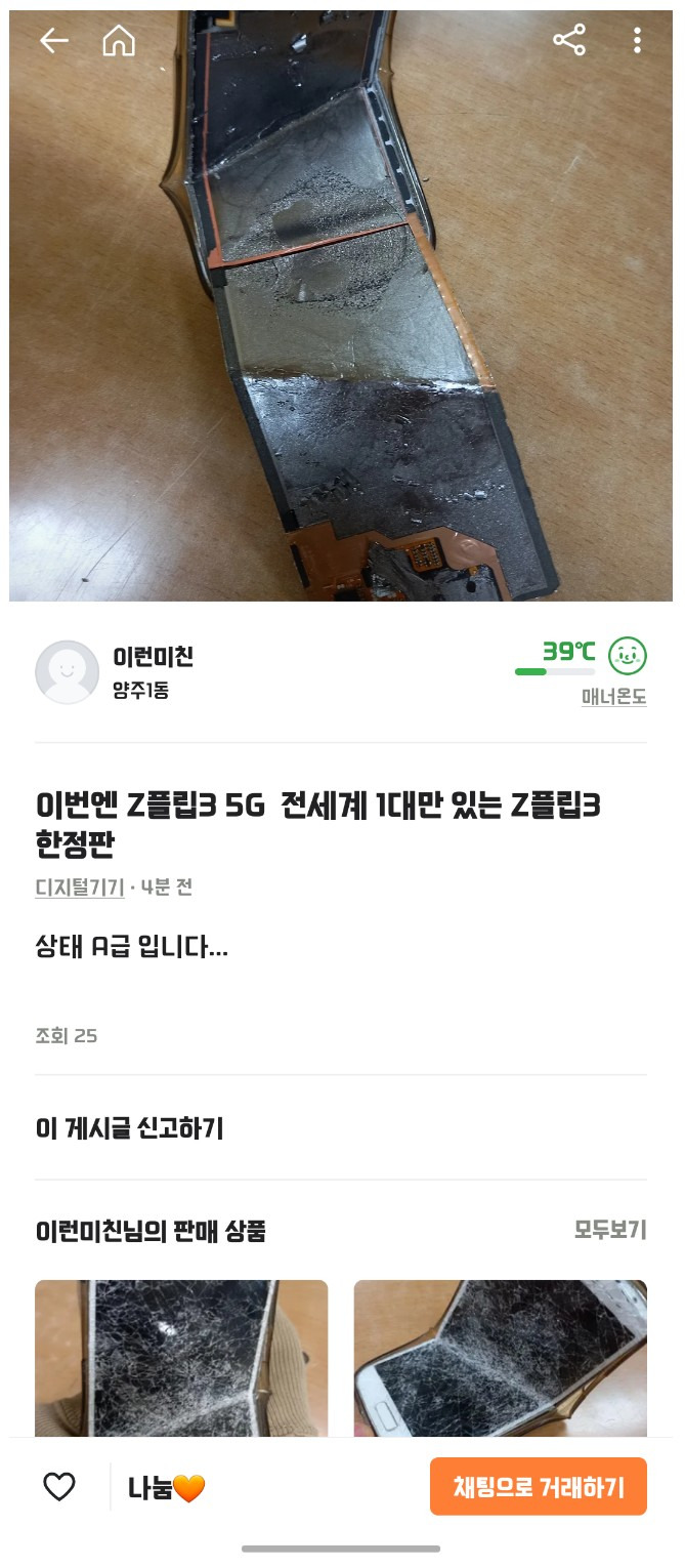 당근마켓에 올라온 전세계 1대 Z플립3