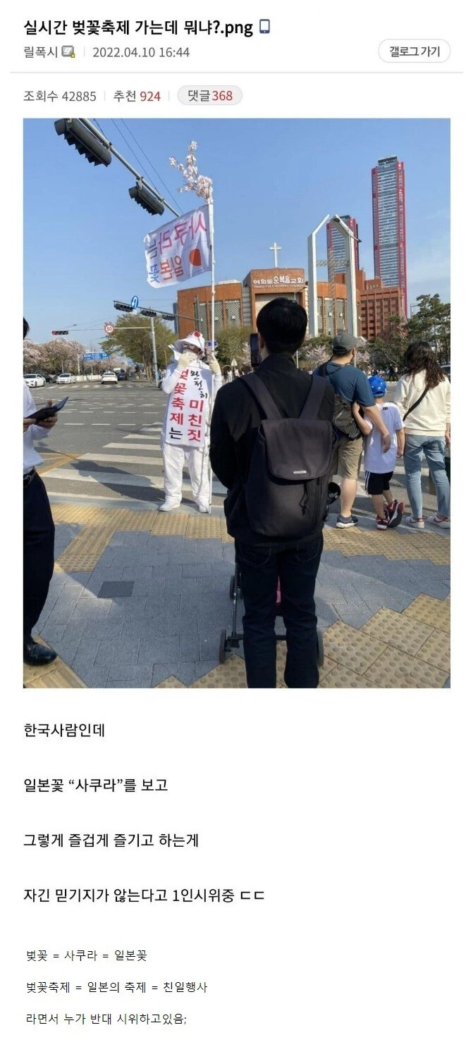 벛꽃축제 반대하는 1인 시위