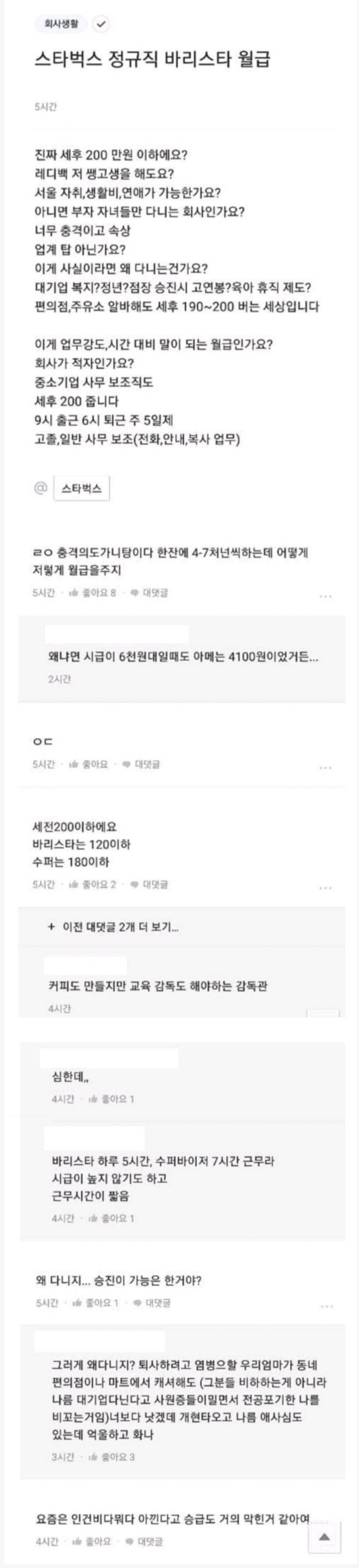 스타벅스 정규직 바리스타 월급