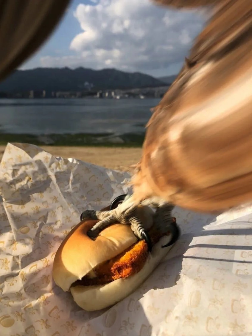 여기에선 음식은 건물 안이나 지붕 아래에서 먹어야 함
