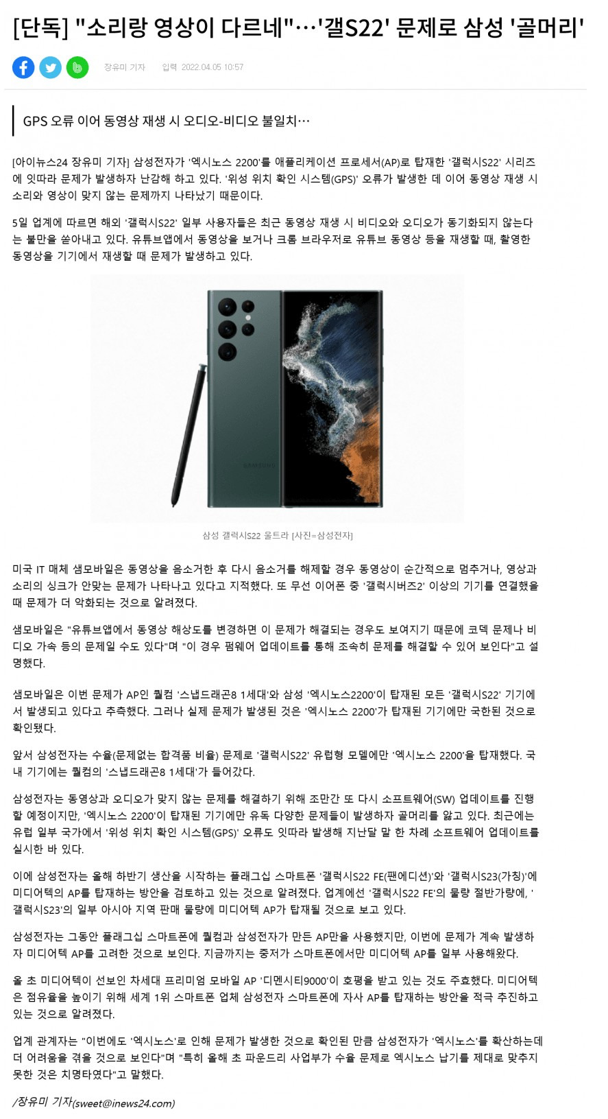 갤럭시S22는 뭐 계속 문제가 터지냐