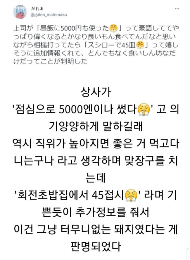 상사가 5만원짜리 점심을 먹었다고 자랑