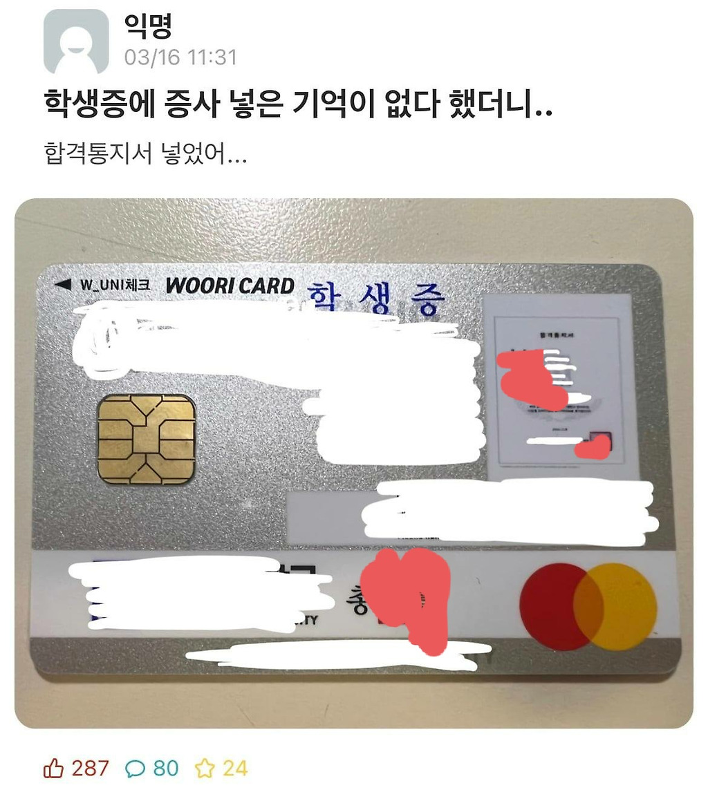 학생증에 증사 넣은 기억이 없다 했더니