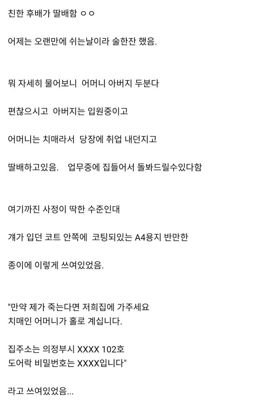 친한 후배 배달 일 하는데..