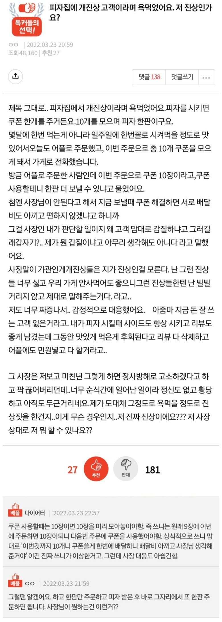 피자가게 쿠폰 진상 논란