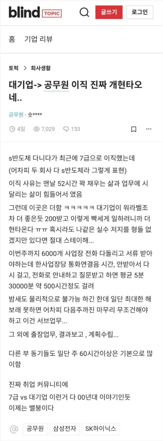 대기업에서 7급으로 이직했는데 현타옴