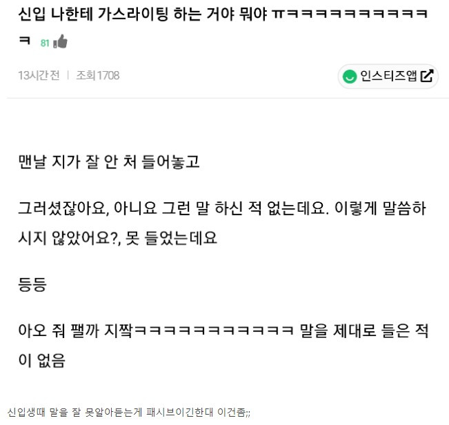 선배한테 가스라이팅 하는 후배