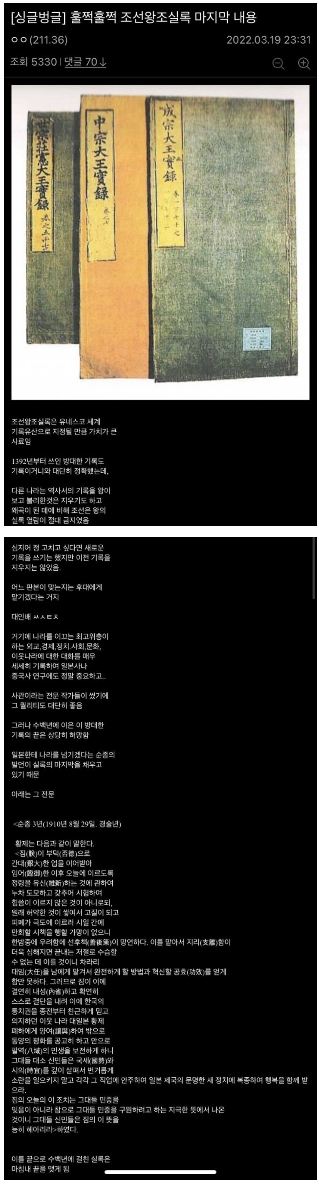 훌쩍훌쩍 조선왕조실록 마지막 내용