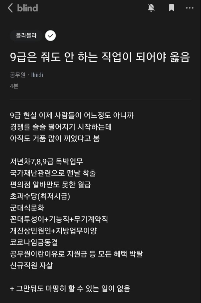 9급 공무원이 떡락하는 이유