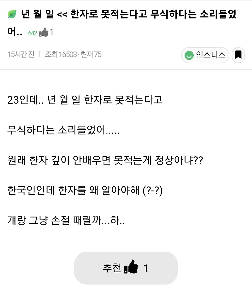 한자 못적는다고 무식하다는 소리들었어