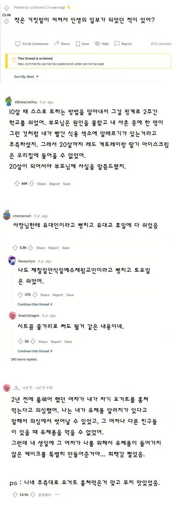 작은 거짓말이 커져서 인생의 일부가 됨
