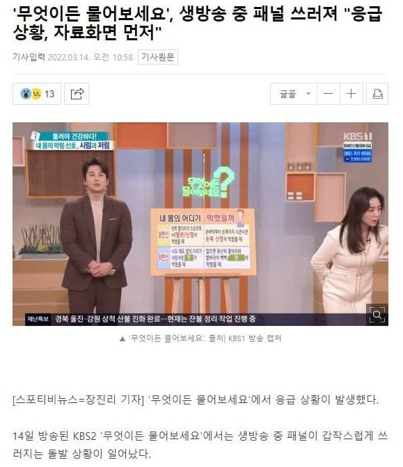 최근 KBS 생방송 중 쓰러지신 교수님..