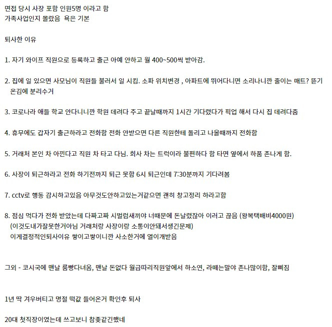 소규모 가족회사 퇴사한 이유