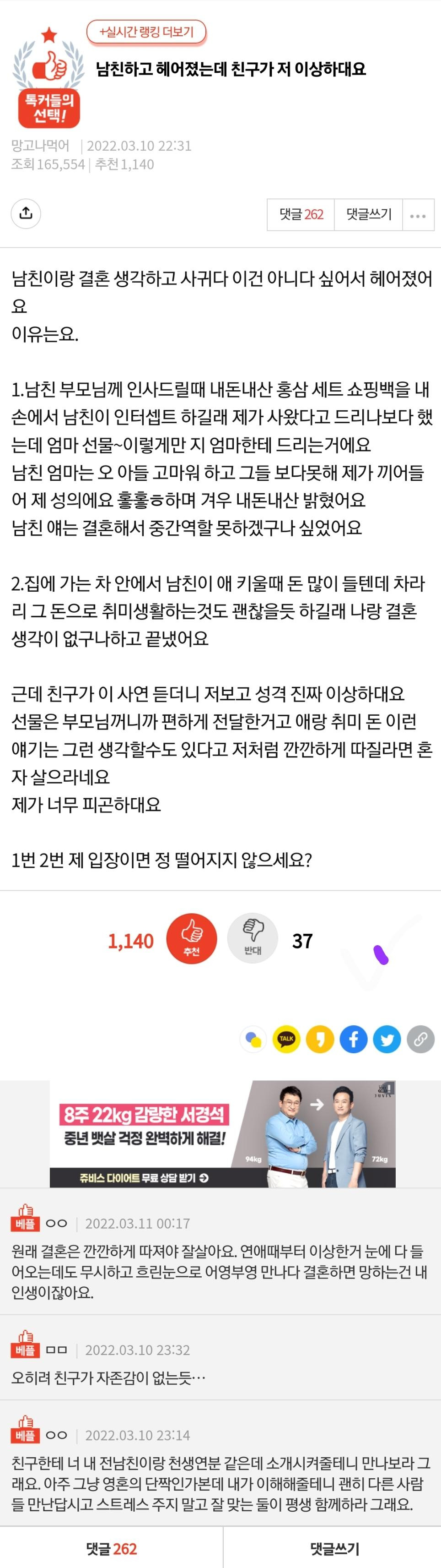 남친하고 헤어졌는데 친구가 이상하대요