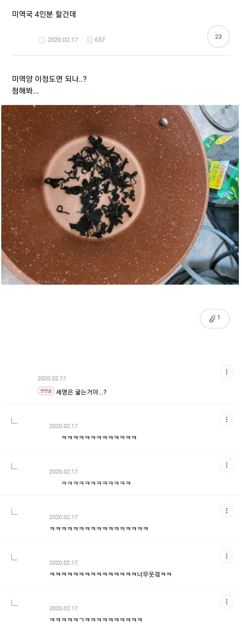 얘들아 나 미역국 4인분 할건데...