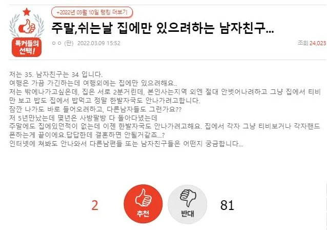 밖에 안나가는 남자친구