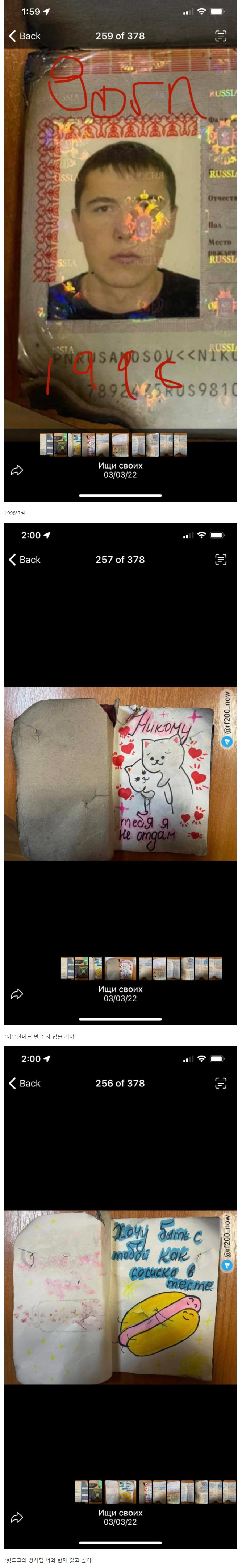 전사한 러시아 병사에게서 발견된 그림들