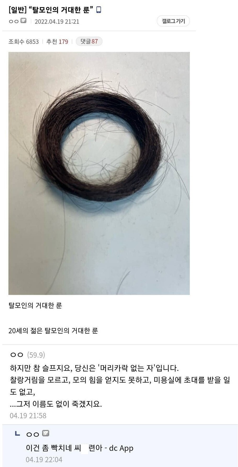 탈모인의 거대한 룬 본문 11 피클포털 목록 EVENT) 지금 로그인 후 광고 제거 혜택을 받으세요! TIP) 초승달 아이콘을 누르고 어두운 화면으로 전환 해보세요 TIP) 본문 하단 무지개 로켓을 누르고 시간 여행을 떠나보세요 TIP) 빈 공간을 두 번 누르면 맨 아래로 바로 갈 수 있어요 TIP) 편지 아이콘이 무지개 빛으로 빛난다면 쪽지가 온거에요 TIP) 본문 하단 댓글 온/오프 버튼으로 숨기거나 펼칠 수 있습니다 같은반 찐따가 보낸 DM 22.04.24 39064 인생에서 이거 하나 쯤은 잘해야 됨 22.04.24 39403 부산대 음식쓰레기 대량 방치 사건 22.04.24 49292 매년 여름 옷이 없는 이유 22.04.24 19132 노량진으로 올라오니 흑화한 강사 22.04.24 19527 전역하면 2억 준다는 북파공작원 부대 22.04.24 18322 한때 돈까스 먹기에 미친 사람들 22.04.24 21262 48살과 21살은 정말 안되는걸까요 22.04.24 26468 처음 이전 6017페이지 6018페이지 6019페이지 6020페이지 6021페이지 열린6022페이지 6023페이지 6024페이지 다음 맨끝 게시물 검색 검색대상 제목 내용 제목+내용 댓글작성자 검색어 필수 삭제요청