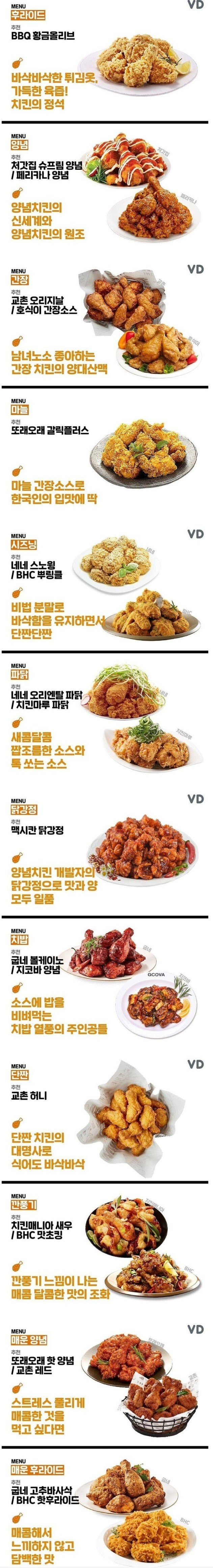 매니아들이 추천하는 치킨 브랜드별 메뉴