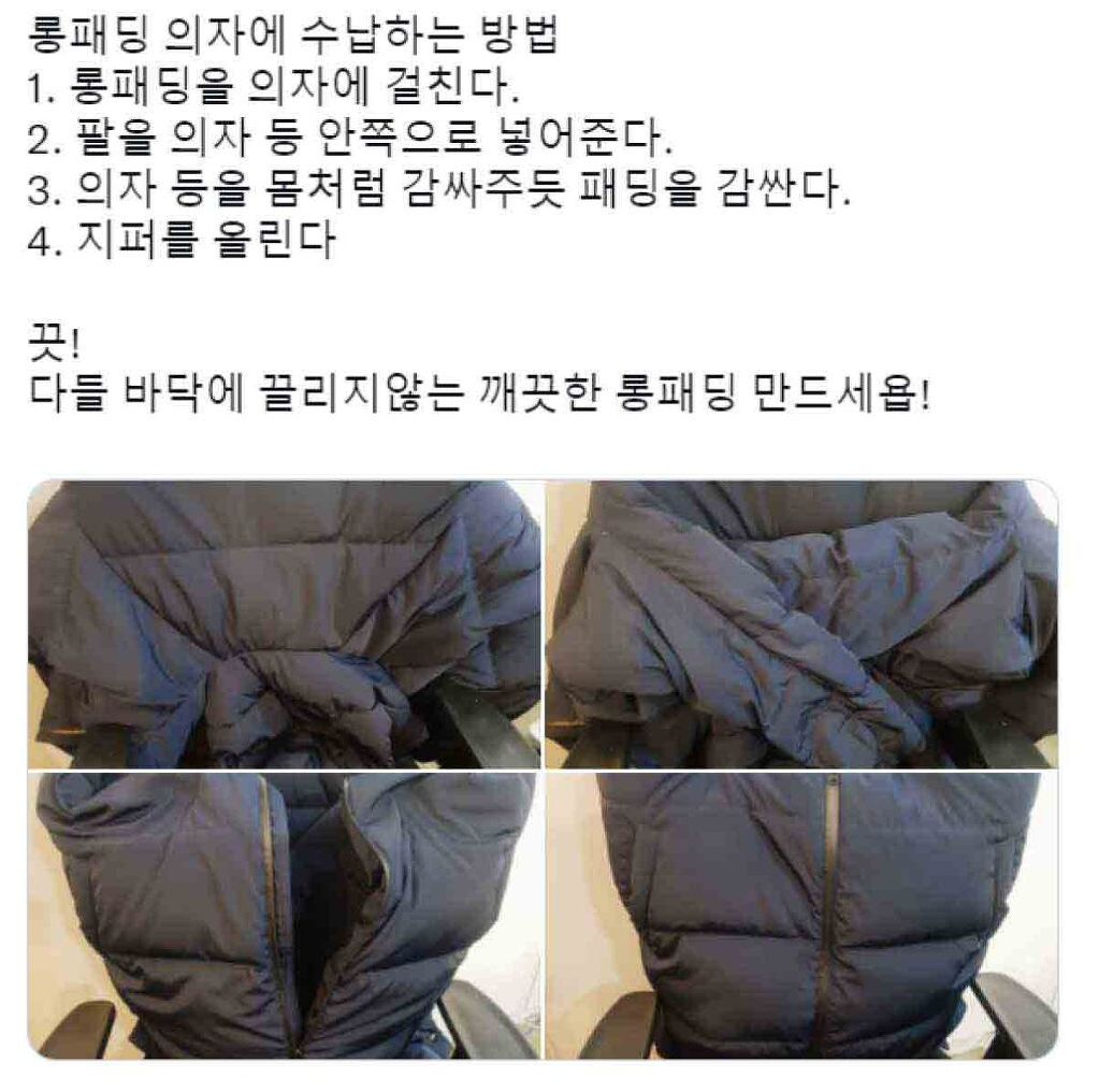 롱패딩 깔끔하게 의자에 수납하는 법